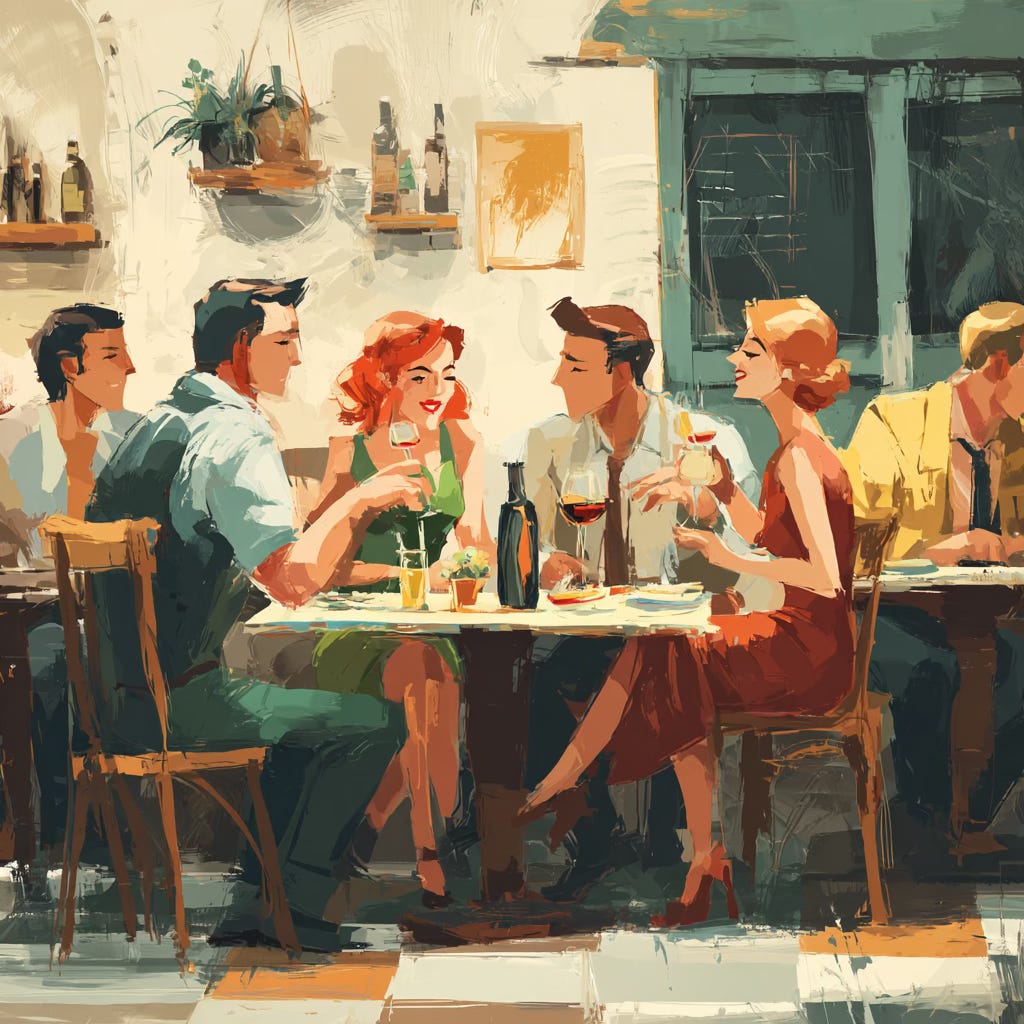Human connection is not found on a screen, or a feed, or an app; it happens across a table, over a meal, in the presence of others. It happens in the passing of plates, the clinking of glasses, the shared laugh, the unexpected conversation, the warmth of being near others who are living their own stories in parallel with your own.